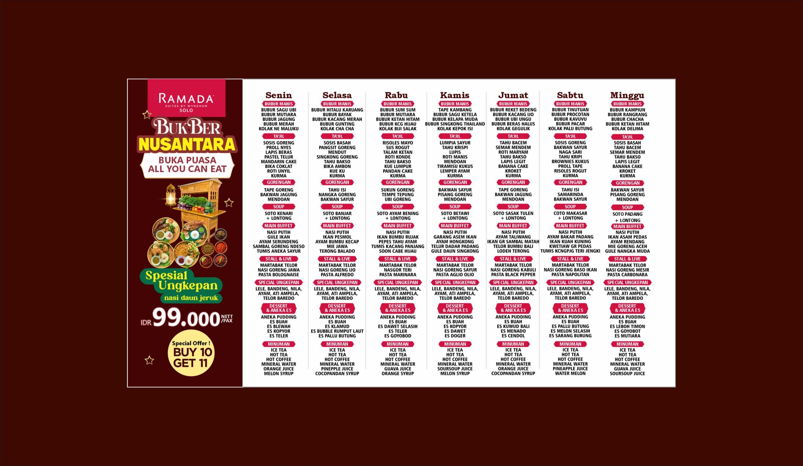 Bagi anda yang membutuhkan akomodasi untuk event maupun bisnis, dengan senang hati kami akan membantu, karena Ramada Suites by Wyndham Solo memiliki 1 Ballroom dan 5 Meeting Room berkapasitas besar untuk keperluan bisnis anda dan juga area outdoor yang menjadi tempat favorit untuk menyelenggarakan outbound, arisan, ulang tahun, akad hingga wedding.